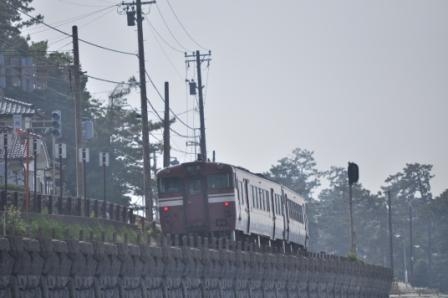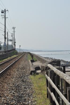 海岸沿いを通る線路。線路を横切って海岸に出ます。