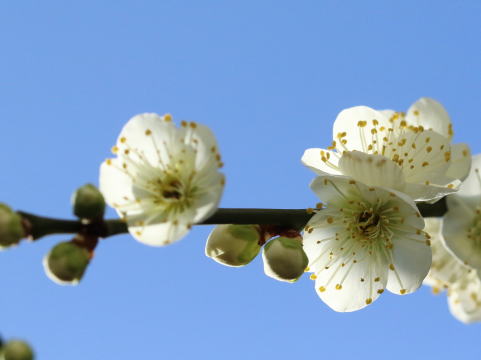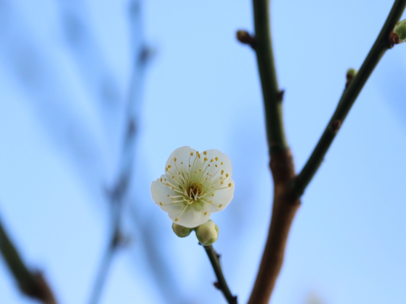 節分にふさわしく春の日差しが心地よい。庭の梅が数輪開花した。