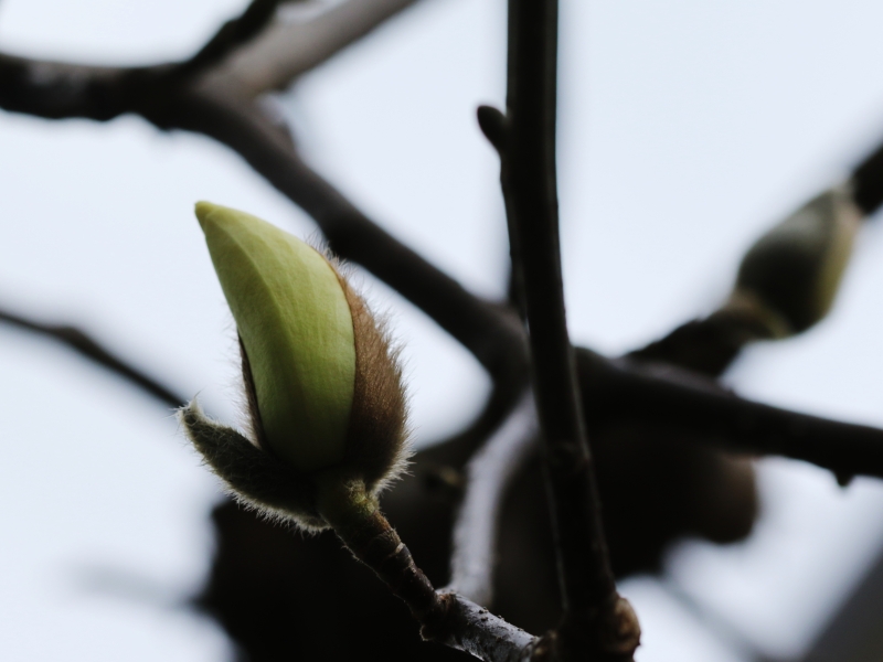 岩根絞の開花前 もうすぐ開く 白木蓮が開花前 しばらくかかる |