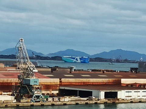 海峡を行く自動車専用船PCTC(Pure Car and Truck Carrier) |