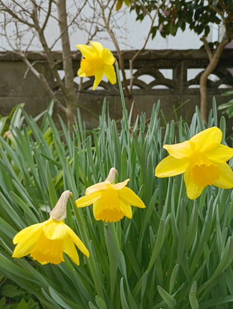 | パパさんの撮影ターゲットが当分続く。今日はラッパ水仙。今年は花が少ないようだ。昨日の水仙とは種類が違う。 |