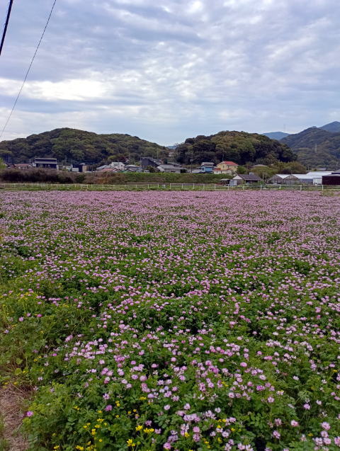 今、畑作業はパートナーの役割になっている。していることはスナップエンドーの収穫である。収穫が終わると20年近く耕してきたこの畑との縁は切れる。この時期例年なら夏野菜を植え付けている頃だが今年はできない。写真はパートナーが収穫を終えて帰路に撮った蓮華畑である。満開で花も雲も良い景色だ。左側に目障りなものが写りこんでいるのが残念!